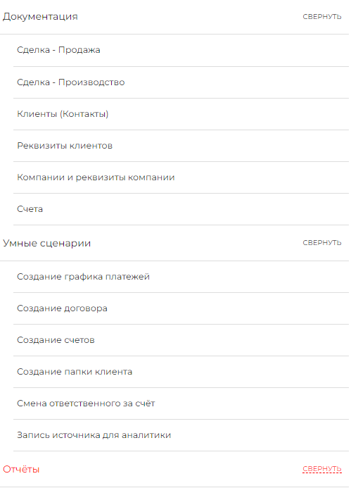 Под каждой стадией скрыты роботы для построения отчётов, которые помогут вам понять работу отделов маркетинга и продаж и принять управленческие решения для роста прибыли компании