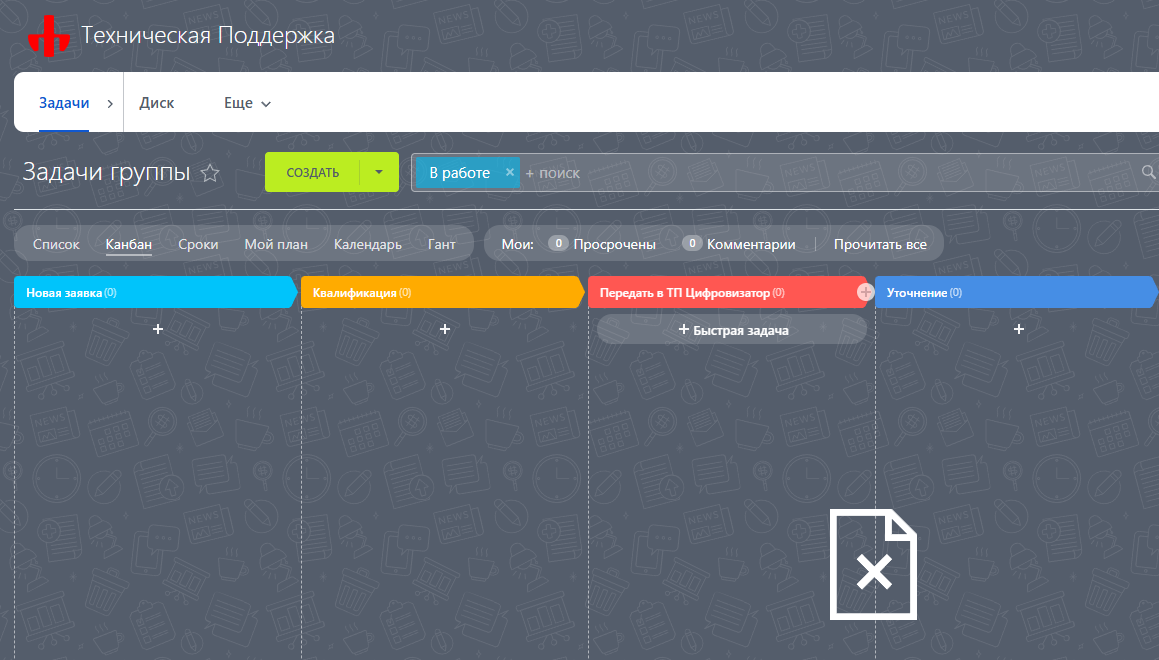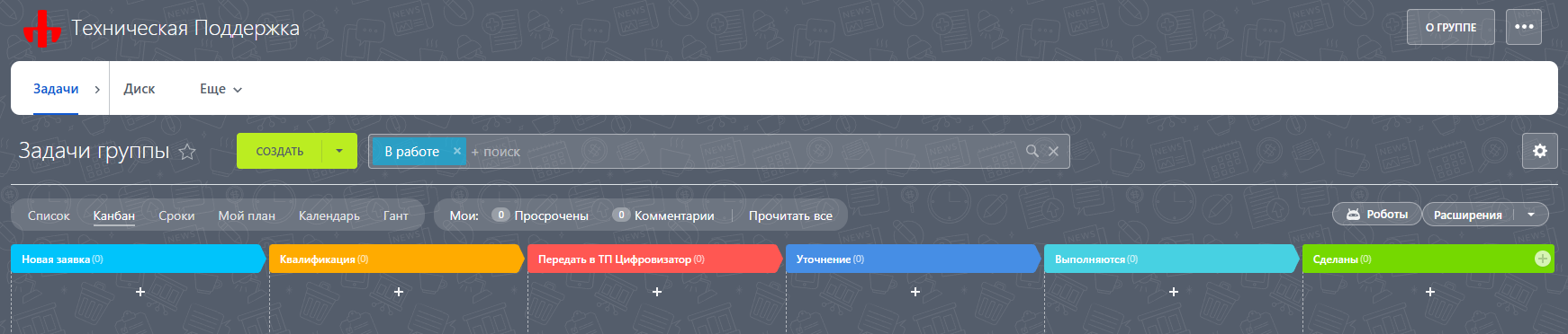 Если в задачах данной группы есть стадия "Квалификация", то переносим задачу на эту стадию вручную для проверки Вашим руководителем. Если она отсутствует, то переносим на стадию "Передать в ТП Цифровизатор".